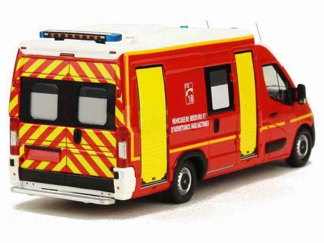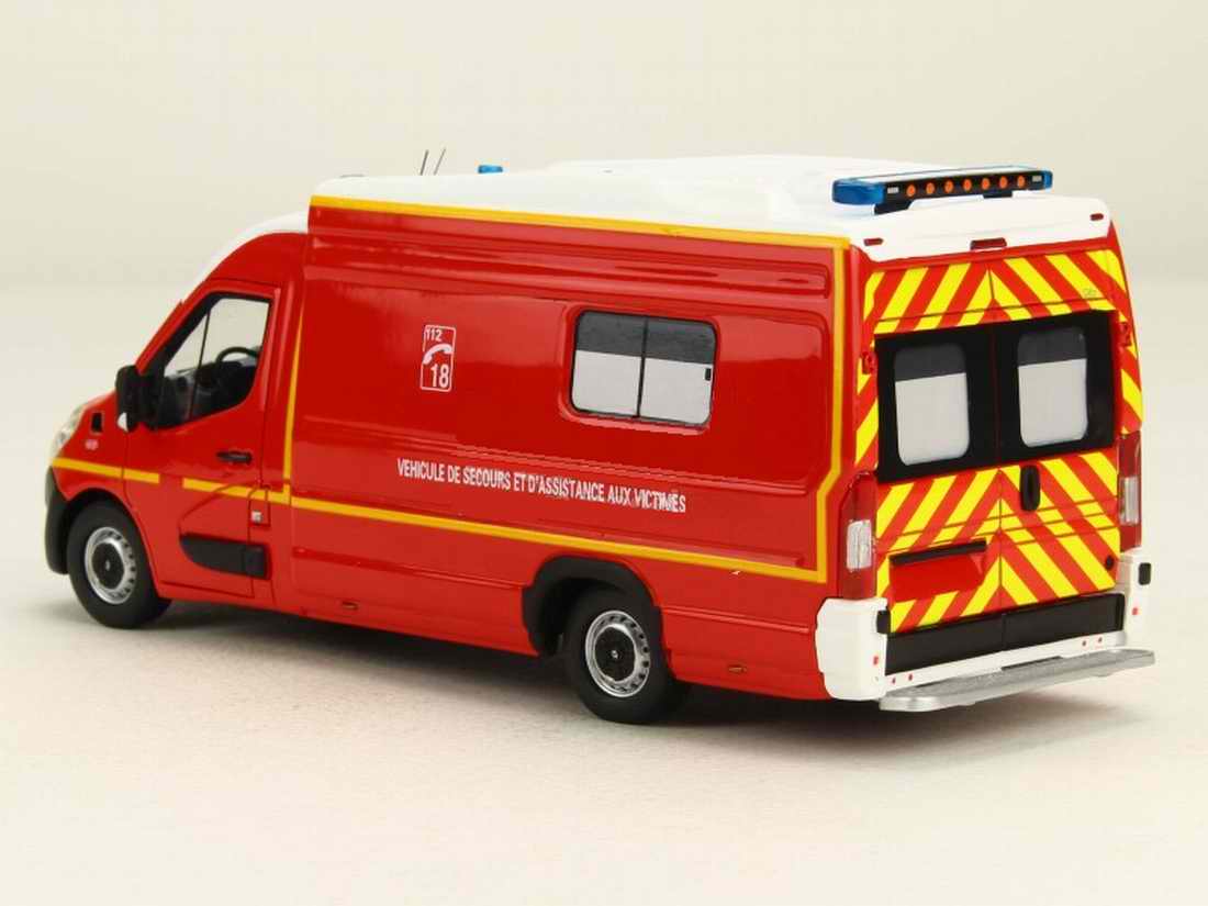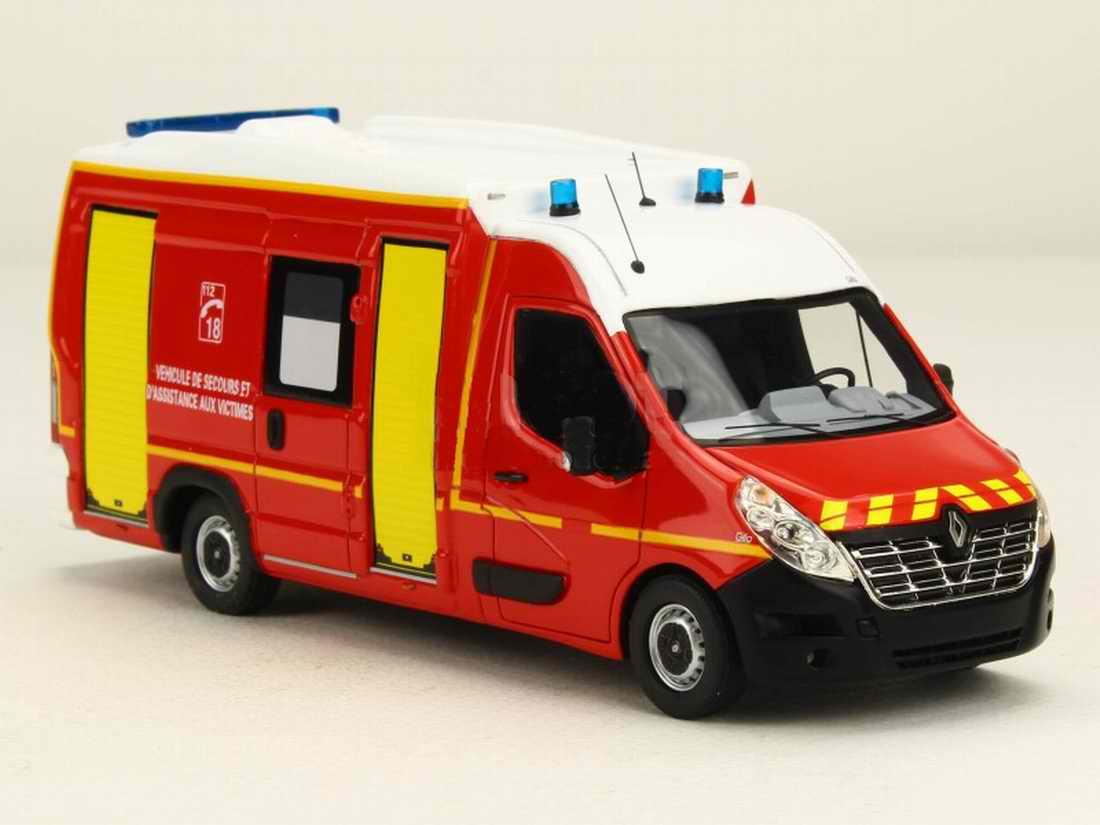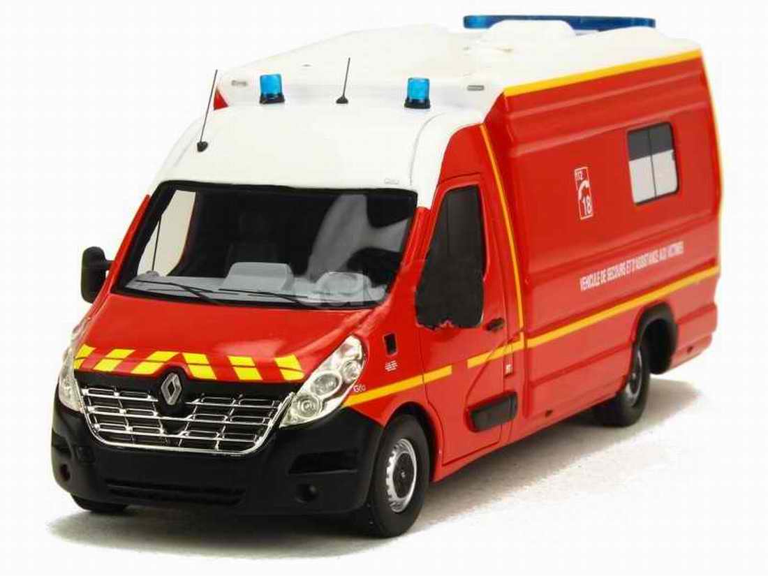 Splendide miniature sous licence officielle Renault du Master III Long GIFA Véhicule de Secours et D’Assistance Aux Victimes des Pompiers de la Manche SDIS 50 .